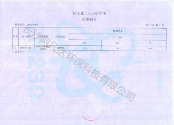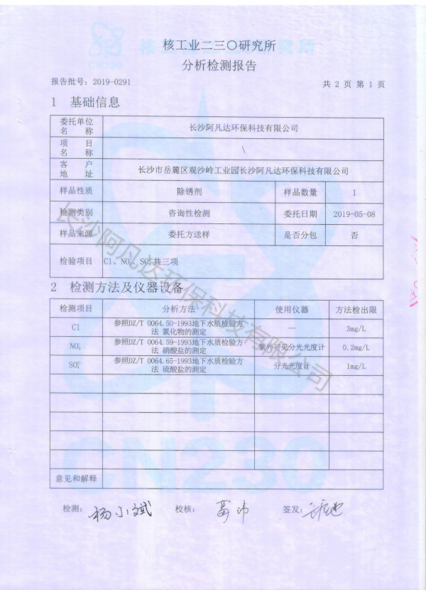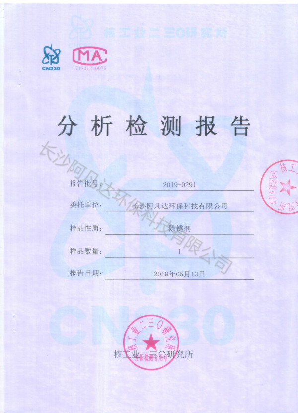 钢筋除锈剂分析检测报告: